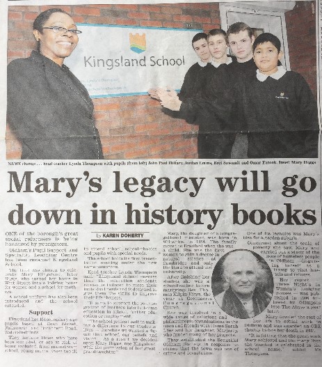 Mary Higg's maiden name, Kingsland, has been used in the name an Oldham school.